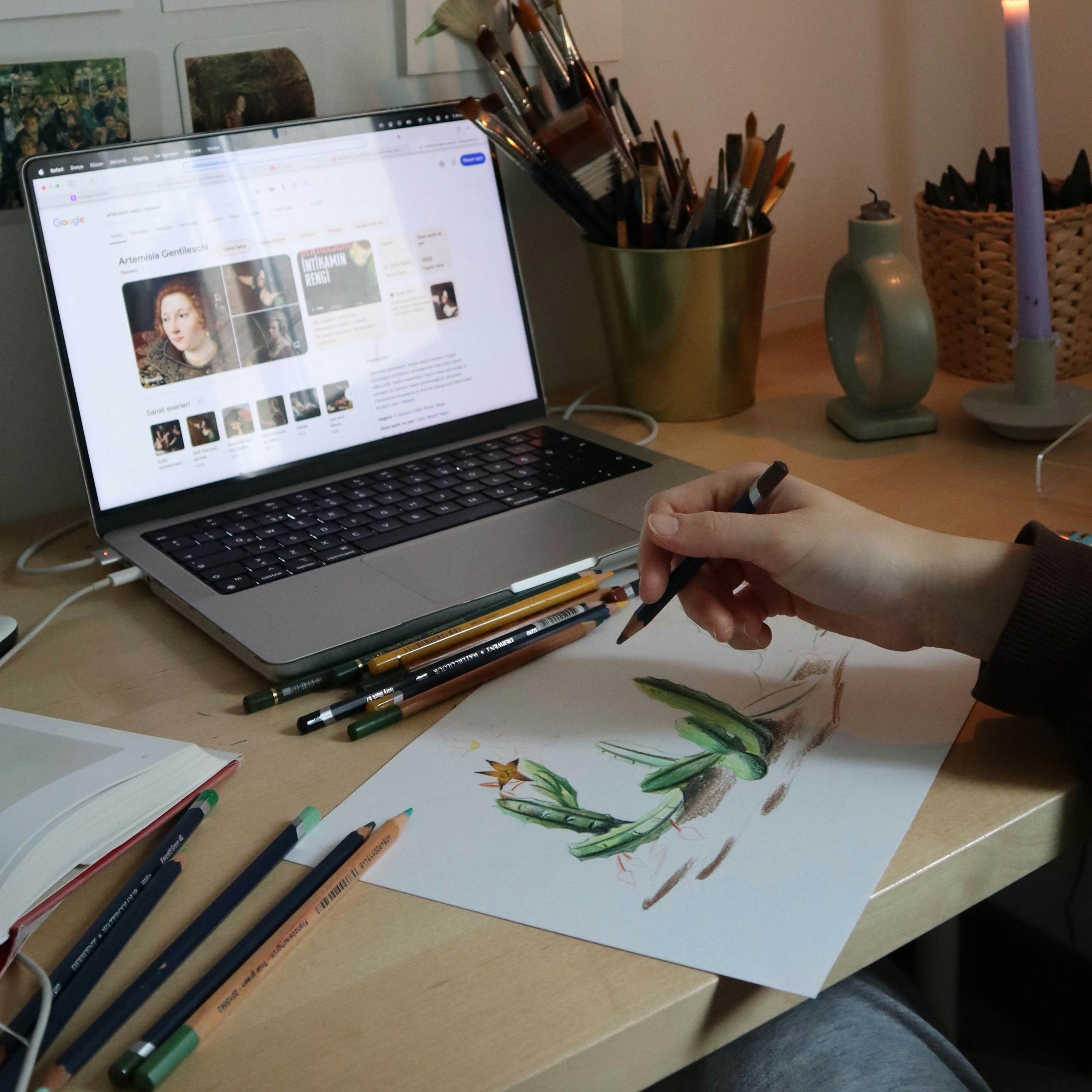 Copyright automatically applies the moment your artwork is “fixed” in a tangible form painted, drawn, or digitally saved.